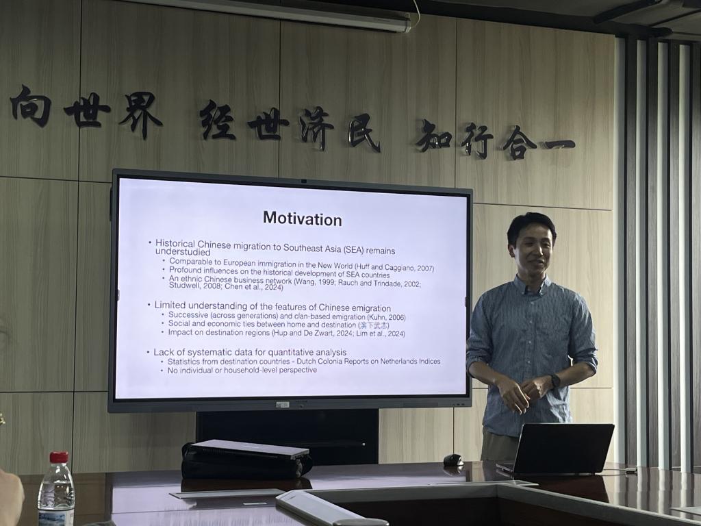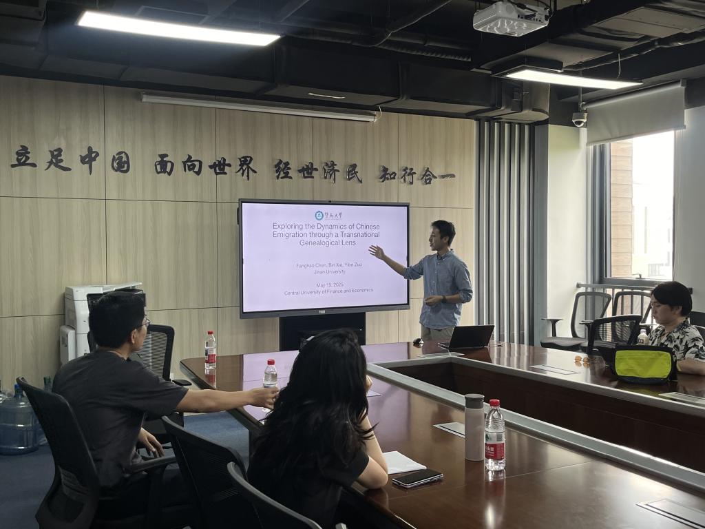 5月16日周五下午,德赢官网Vwin“中青年学者讲座”于沙河校区学院楼11号楼308会议室举行。此次讲座邀请到暨南大学德赢官网Vwin陈方豪助理教授,分享题为“Exploring the Dynamics of Chinese Emigration through Transnational Genealogical Lens”的研究。德赢官网Vwin德赢官网Vwin胡志安副教授主持讲座,德赢官网Vwin多位老师和十余名学生参加了此次讲座。