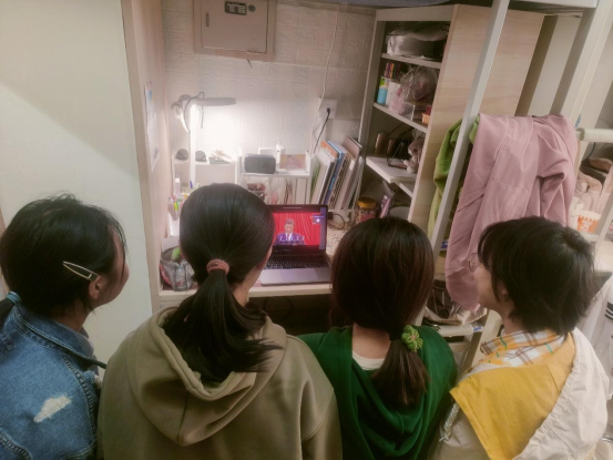 宿舍指导员前往宿舍与宿舍同学一起观看直播