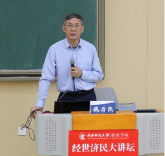 2023年5月10日,中国社会科学院农村发展研究所所长、研究员魏后凯教授为我校师生带来了以“建设农业强国的中国道路与战略路径”为主题的讲座。讲座由德赢官网Vwin校长助理、德赢官网Vwin院长陈斌开主持。德赢官网Vwin党委书记郭冬梅、党委副书记霍晓冉、副院长何召鹏,以及学校办公室副主任刘星等百余名师生现场聆听讲座。