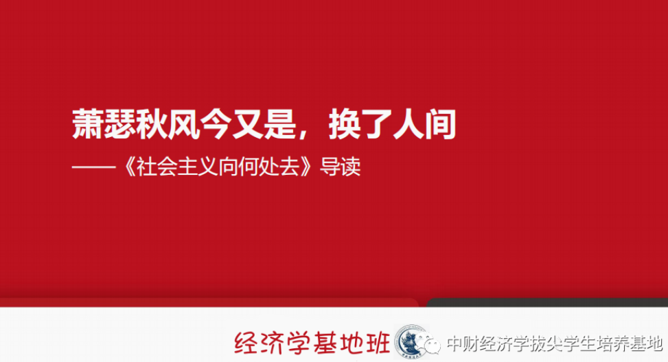 2022年6月1日下午,数字经济时代经济学拔尖学生培养基地(以下简称为“基地”)邀请中共中央党校(国家行政学院)经济学教研部袁辉副教授做“作为艺术整体的《资本论》”主题讲座。本次活动由何召鹏老师主持。
