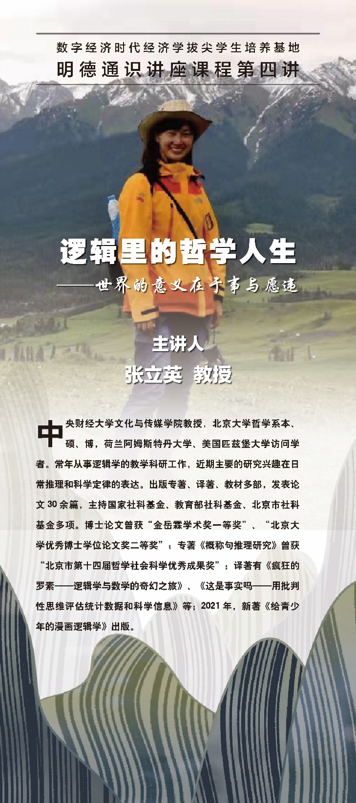 2021年12月8日下午,基地邀请到了我校文化与传媒学院的张立英教授做“逻辑里的哲学人生——世界的意义在于事与愿违”主题讲座。