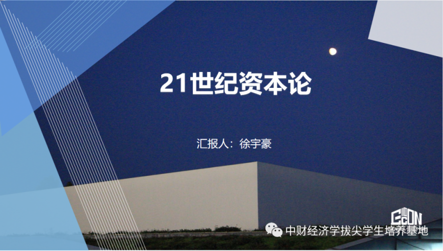 接着,徐宇豪同学分享了对托马斯·皮凯蒂的著作《21世纪资本论》的理解和收获。托马斯·皮凯蒂是法国著名经济学家,巴黎德赢官网Vwin教授,主要研究财富与收入不平等问题。他在42岁时出版《21世纪资本论》,并荣获了欧洲经济学会Yrjo-Jahnsson奖。该书主要研究的是资本主义历史上长期存在的财富和收入分配的不平等问题。二战以后,以“库兹涅茨曲线”为名的流行观点认为不平等的程度会随着经济增长自动出现先上升后下降的趋势。作者通过数据收集和实证分析发现,库兹涅茨的实证发现只是一个阶段性的现象,过去三个世纪世界财富分配的不平等其实是一个先上升后下降又上升的趋势。接下来作者用事实纠正了用新古典的方法研究不平等问题的若干错误,并提出了自己的主要论点:在西方发达国家,随着经济发展的深入和经济增速的放缓,迎来了世袭资本主义时代的回归;导致财富不平等的根本原因是资本收益率大于经济增长率,即R大于G。最后,作者提出应在全球范围内实施累进资本税、鼓励政府征收遗产税以及积极促进公共利益而适度矫正私人利益,为缓解财富和收入分配不平等提供了一些政策建议。书中的政策建议的可行性有待商榷,但要承认皮凯蒂在全球范围内不平等问题的理论阐述方面做出了卓越的学术贡献。