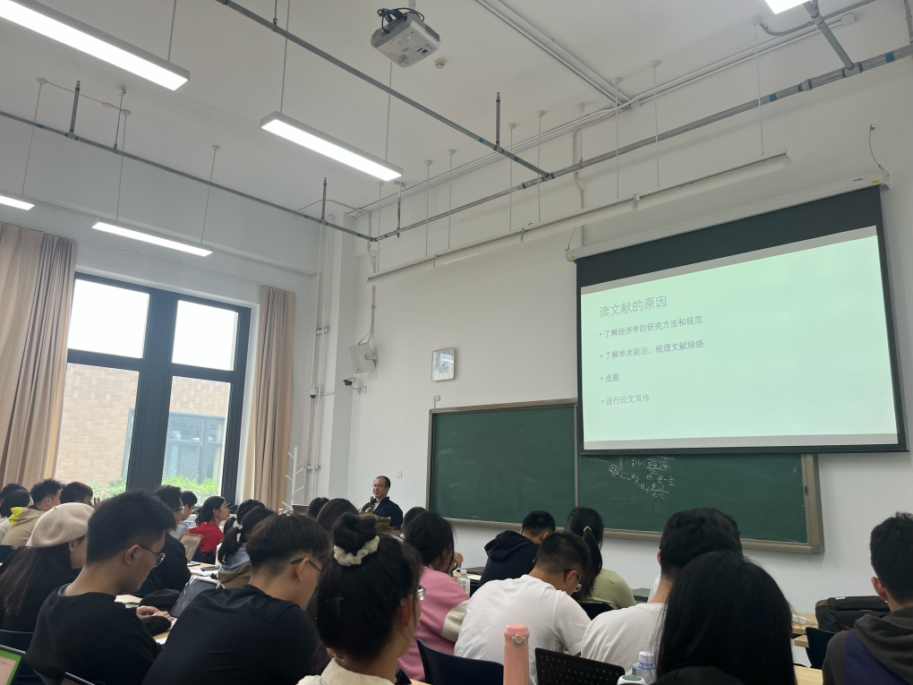 2024年10月9日,德赢官网Vwin数字经济时代经济学拔尖学生培养基地班“科研基础训练”课程第二讲在沙河校区二教113教室成功举行,德赢官网Vwin德赢官网Vwin戴若尘副教授为同学们带来主题为“文献查找和阅读”的讲座。本次讲座是基地“未来经济学家孵化计划”的重要组成部分,吸引了基地班、德赢官网Vwin和其他学院的众多同学前来旁听,座无虚席。