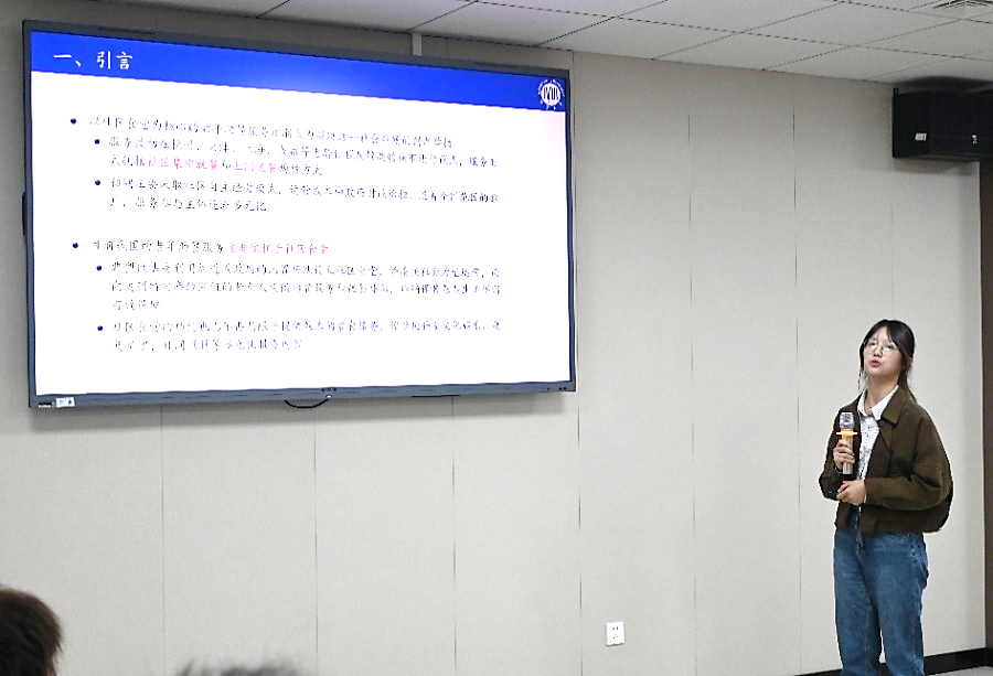 湘潭大学商学院经济学类(韶峰班)学生代表刘尧、贺嫦宇汇报了各自的工作论文。刘尧同学探究了社区食堂建设对老年人健康水平以及消费水平的影响,研究发现建设社区食堂对二者有显著的促进作用;贺嫦宇同学研究了同侪效应在班级近视率中的表现,是健康经济学领域较为新颖的探索。随后,梁银鹤老师分别就引言立意、选题创新性、文献贡献、识别策略为两篇文章提出了建设性意见。与会同学也就选题背景与回归结果的经济含义进行了充分讨论。