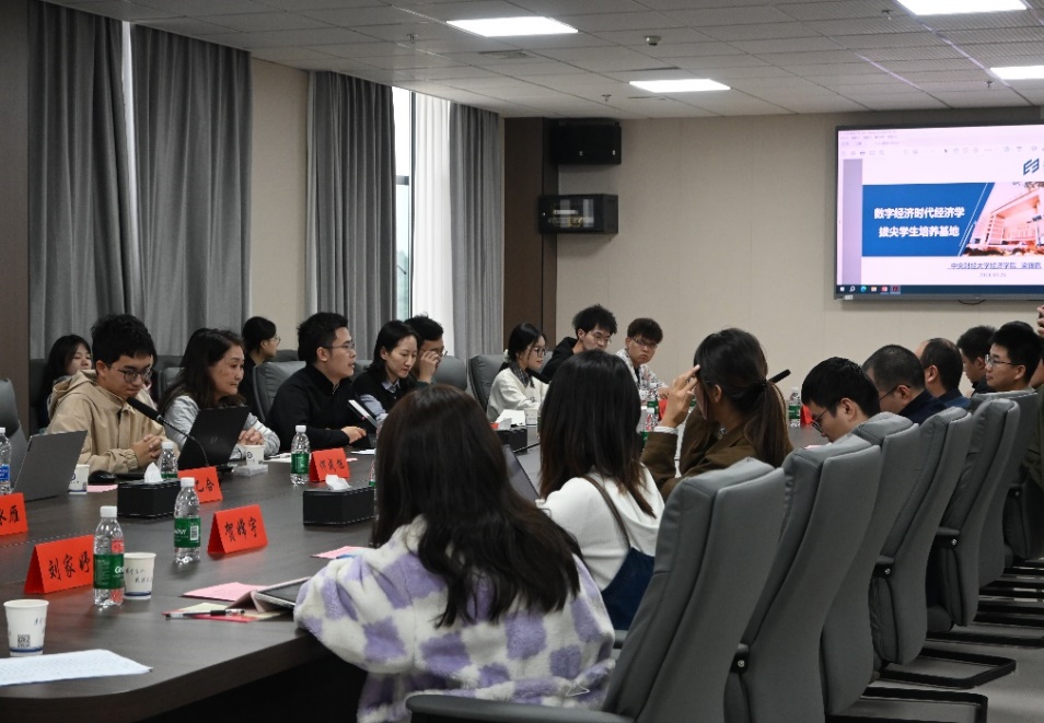 拔尖基地旨在培养具有家国情怀、人文情怀、世界胸怀,开阔的国际化视野和浓厚的本土意识,具有扎实的经济学理论功底和数据科学基础,具有批判性思维能力和创新精神,能够勇攀世界科学高峰的经济学家。基地重视经济学专业理论素养和学术能力的培养,加强实践调查研究的课程体系建设,培育学生养成学术自觉、增强学术本领。通过精心设计和安排,基地将新时代、新人才的理念植入培养方案,开阔学生视野,为未来做充分准备。数年来,基地以思政领航,依托一个启润书院,实施“一人一方案”、“导师组”等精细化育人模式,形成了中财大经济学“顶天-立地-强基”的拔尖人才育人体系,取得了颇为丰硕的育人成果。在听取了梁银鹤老师的介绍后,与会师生均对基地办学成效给予了充分的肯定。