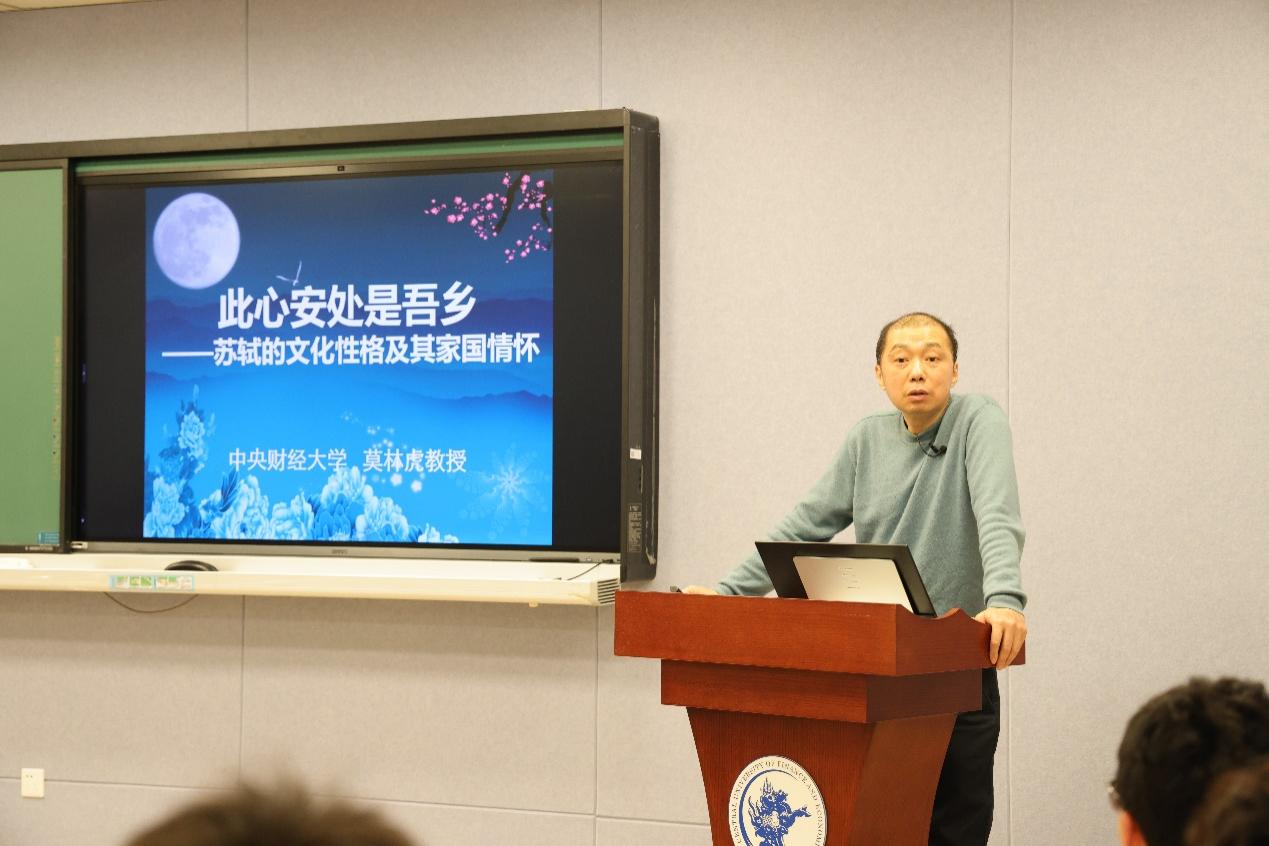 2024年11月20日下午,数字经济时代经济学拔尖学生培养基地在沙河校区6号学院楼107教室举办“明德至善通识课程讲座”。基地邀请德赢官网Vwin文化与传媒学院的莫林虎教授,举办以“此心安处是吾乡——苏轼的文化性格及其家国情怀”为主题的讲座。